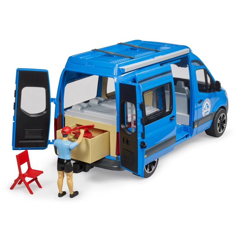 MB Sprinter kemperio BRUDER versija pasižymi įspūdingu detalumu ir universalumu. Atidaromos vairuotojo kabinos durys ir galinės durys. BWorld figūrėlė gali patekti į integruotą dvigulę lovą ir prie didelės daiktadėžės. Ypač išsiskiria naujai sukurtos stumdomos durys vairuotojo pusėje, pro kurias galima patekti į virtuvės zoną. Kemperis turi išskleidžiamą tentą saulėtoms dienoms, taip pat stilingus kempingo baldus ir indus.