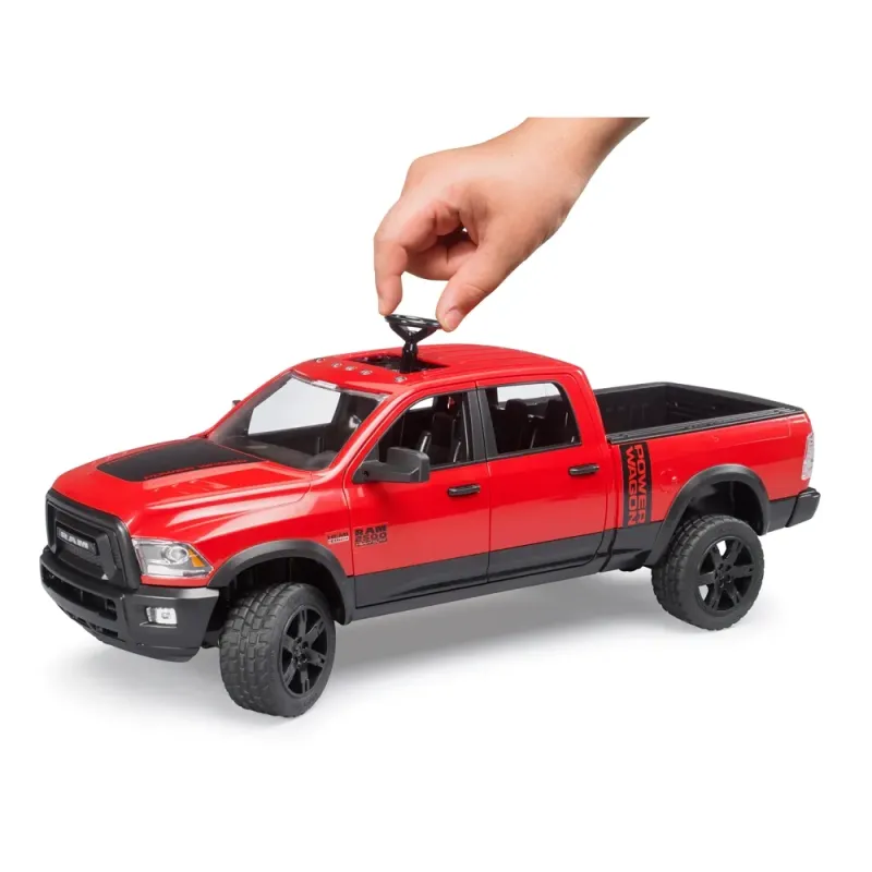 Dodge RAM 2500 Power Wagon V8 HEMI variklis išvysto 410 AG ir sukuria 582 niutonmetrų sukimo momentą. Ši galinga transporto priemonė, pasižyminti įspūdingu Power Wagon dizainu, dabar papildė BRUDER asortimentą. Kaip ir tikrasis, žaislas turi didelę kabiną su keturiomis durimis. Visos durys atsidaro ir jose telpa keturios BWorld figūrėlės. Šio 1:16 mastelio modelio pakaba yra plaukiojanti, todėl užtikrinamas važiavimo komfortas ir galimybę važiuoti bekele. Priekinę ašį galima vairuoti naudojant pridedamą vairo pratęsimą. Galinis bortas atidaromas kroviniams vežti.
