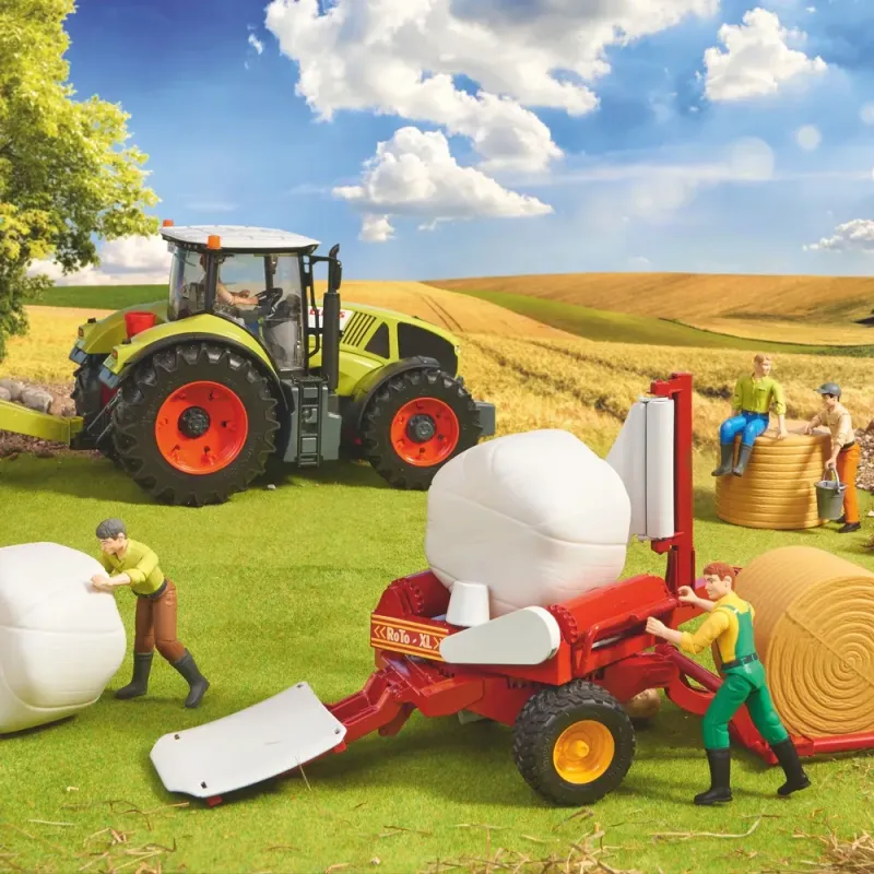 Rulonas ant besisukančio stalo pakeliamas priekine pakrovimo svirtimi. Nuleidus pakrovimo svirtelę, automatiškai besisukantis sukamasis stalas pradeda judėti, taip imituodamas vyniojimo procesą. Vyniojimo proceso metu pakrautas apvalus rulonas sukasi aplink vertikaliąją ašį, o ritinėlių pavara - aplink horizontalią ašį, padedant besisukančiai konstrukcijai. Po to rulonas padedamas ant išmetimo platformos, naudojant išvertimo mechanizmą. Į komplektą įeina vienas rudos spalvos šieno rulonas ir vienas baltas apvalus rulonas. Prikabinimo įtaiso padėtį galima reguliuoti pagal poreikį. Vyniotuvą galima sujungti su Claas Rollant 250 apvaliuoju presu ir su visais Profi serijos traktoriais (neįeina į komplektą).