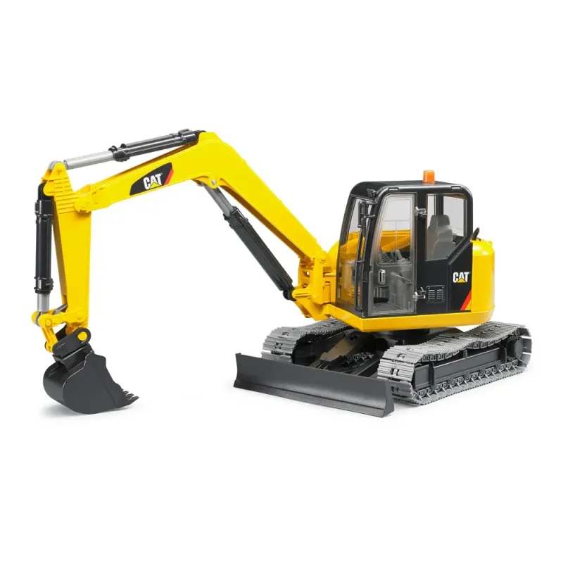 CAT mini ekskavatorius yra ne visai mini, o tikras savo kategorijos milžinas. Ekskavatoriaus ranką taip pat galima pasukti į šoną, todėl jis nepakeičiamas atliekant kraštovaizdžio formavimo ir sodininkystės darbus, taip pat bendrus statybos darbus, kai transporto priemonė efektyviai perkelia nedidelius žemės kiekius. Dėl vikšrinės važiuoklės jis taip pat gali įveikti sudėtingą reljefą. Važiuoklės konstrukcija suteikia transporto priemonei daugiau stabilumo ant purios žemės, todėl ji labiau tinka paprastiems lyginimo darbams. Ekskavatoriaus kaušas yra nuimamas. Galinėje dalyje esantis variklio dangtis atsidaro, kabina yra įstiklinta, o jos durys atsidaro. Ekskavatoriaus korpusas pasisuka 360° kampu, o kaušo svirtis - 180° kampu - visai kaip tikrame ekskavatoriuje.