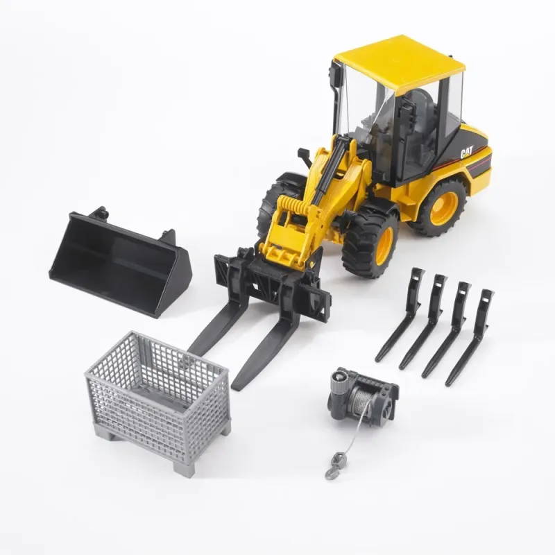 Kaip ir originalas, BRUDER modelis turi įvairiausių funkcijų. Teleskopinę ranką galima ištiesti, o šakių pasvirimo lygį galima reguliuoti atsižvelgiant į rankos pasvirimo kampą. Kėlimo šakės gali būti pakeistos kaušu arba kitais BRUDER siūlomais priedais. Krautuvą galima pasukti 360° kampu. Stabilumą užtikrina keturios teleskopinės atramos. Ypatinga savybė - keturių ratų vairavimas (mažas apsisukimo spindulys). Vairo judesys perduodamas krumpliaračiais per besisukančios konstrukcijos sukamąjį žiedą į važiuoklėje esančią vairo traukę, tai naujoviškas sprendimas žaislams. Būtent dėl to šį modelį ir daugybę jo funkcijų vaikai su malonumu naudoja.
