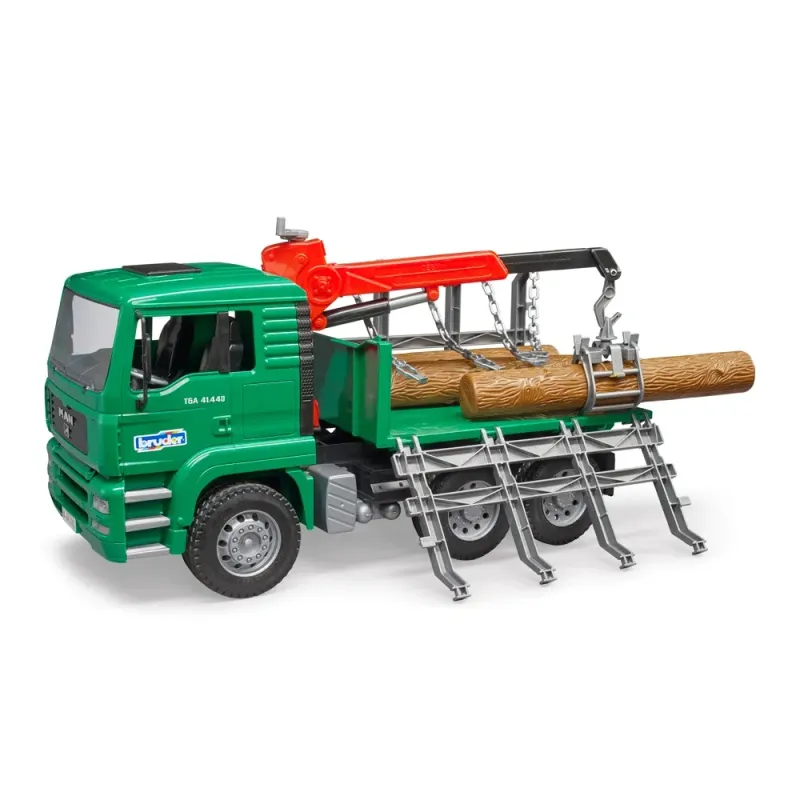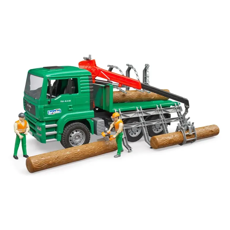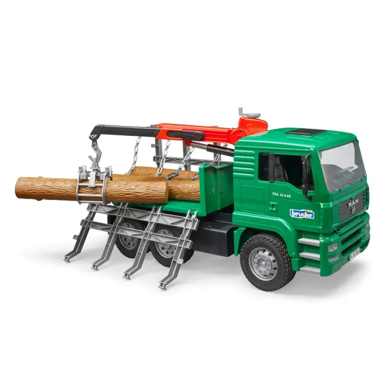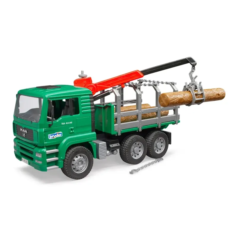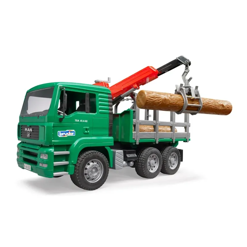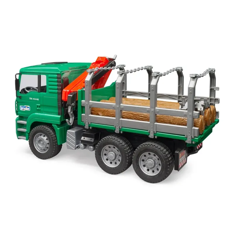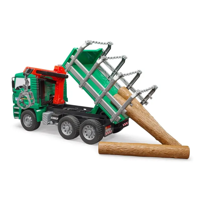 Iš po pakreiptos MAN miškovežio vairuotojo kabinos matyti variklio blokas. Vairuotojo kabinos veidrodėlius galima atlenkti, o miškovežio šonines sieneles - sulankstyti. Valdomame pakrovimo krane yra griebtuvas, kuris naudojamas pakraunant ir iškraunant miškovežį. Pridedami trys medžių rąstai.