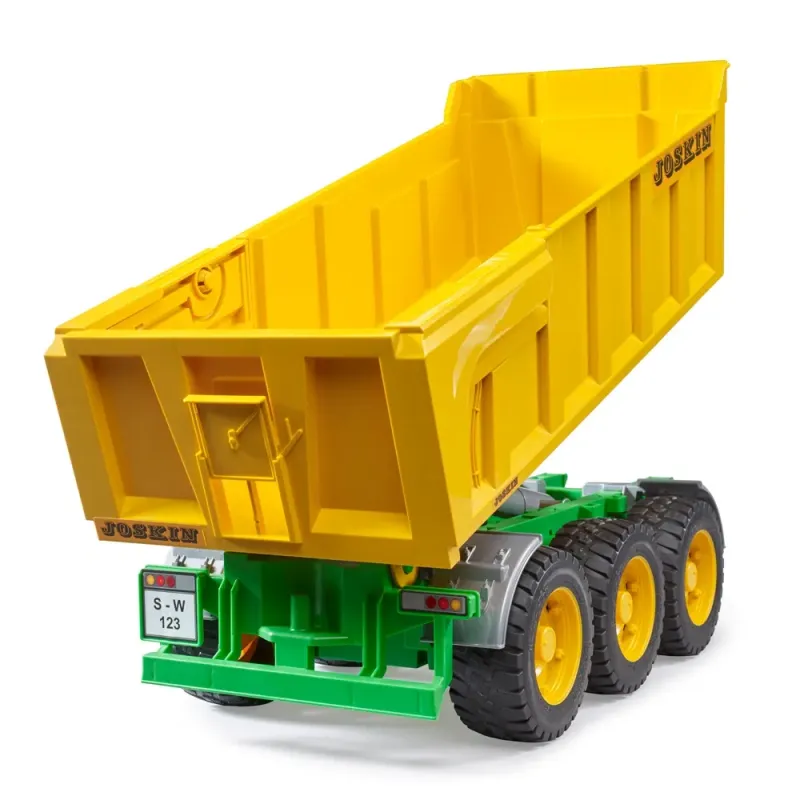 Belgijos gamintojo Joskin 3 ašių savivartis yra viena didžiausių ir sunkiausių savivarčių priekabų rinkoje. Šių „monstrų“ originalai, skirti sunkiems kroviniams krauti ir vežti ekstremaliomis sąlygomis, pavyzdžiui, dirbant po žeme ar žemės ūkyje nelygioje vietovėje, keliamoji galia iki 24 tonų arba iki 29 kubinių metrų talpos. Įspūdingas BRUDER modelis sukurtas taip pat, kaip ir originali Trans-SPACE serija, ir turi sulankstomą ir fiksuojamą savivartį su automatiniu galinių durų atidarymu. Trijų ašių važiuoklė kompensuoja bet kokio reljefo nelygumus. Ši savivartė priekaba idealiai dera su naujos kartos Profi serijos traktoriais, kurie jau pradžiugino daugelį klientų.