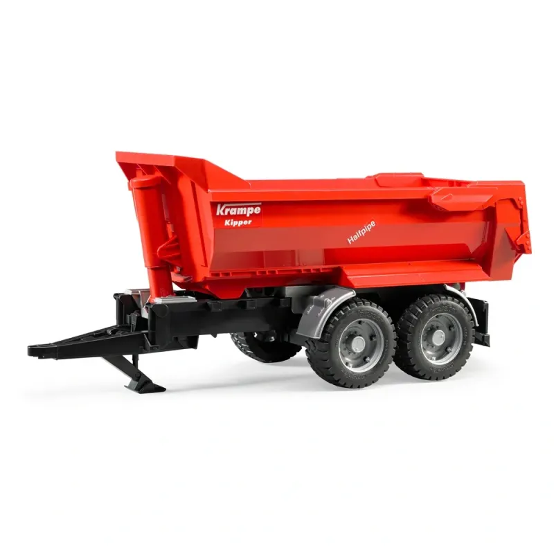 Puspriekabės savivarčiai tampa vis populiaresni tais atvejais, kai reikia efektyviai perkelti žemę. Traktoriaus ir priekabos agregatui, sudarytam iš galingo traktoriaus ir tandeminės ašies priekabos, dabar dažnai teikiama pirmenybė prieš sunkvežimį, ypač kai gruntas yra pelkėtas ir sudėtingas. Žemės ūkyje taip pat dažnai susidursite su tokio tipo priekabomis. BRUDER modelis į smėlio dėžę perkelia tokius pat galingus žemės judinimo pajėgumus, kokius originalas siūlo realiame gyvenime. Dėl tvirtos konstrukcijos, kurioje pakrautas krovinys puikiai išcentruojamas, transporto priemonės svorio centras išlieka viduryje ir užtikrina tokį važiavimo stabilumo lygį, kokio neįmanoma pasiekti su dėžės formos kėbulais. Kadangi apvertimo cilindras yra centre priešais kėbulą, originalas pasižymi išskirtiniu jėgos perdavimu į kėbulą apvertimo metu. Šis modelis pasižymi neprilygstamu vizualiniu patrauklumu, be to, dėl daugiapakopio skląsčio žaidimas su šiuo modeliu tampa dar labiau įtraukiančia patirtimi. Krampe tandeminės ašies savivartė priekaba yra dar vienas mūsų žemės ūkio priekabų linijos akcentas.