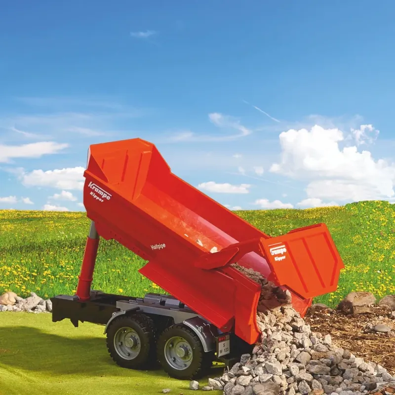 Žemės ūkyje dažnai susidursite su tokio tipo priekabomis. BRUDER modelis į smėlio dėžę perkelia tokius pat galingus žemės judinimo pajėgumus, kokius originalas siūlo realiame gyvenime. Dėl tvirtos konstrukcijos, kurioje pakrautas krovinys puikiai išcentruojamas, transporto priemonės svorio centras išlieka viduryje ir užtikrina tokį važiavimo stabilumo lygį, kokio neįmanoma pasiekti su dėžės formos kėbulais. Kadangi apvertimo cilindras yra centre priešais kėbulą, originalas pasižymi išskirtiniu jėgos perdavimu į kėbulą apvertimo metu. Šis modelis pasižymi neprilygstamu vizualiniu patrauklumu, be to, dėl daugiapakopio skląsčio žaidimas su šiuo modeliu tampa dar labiau įtraukiančia patirtimi.